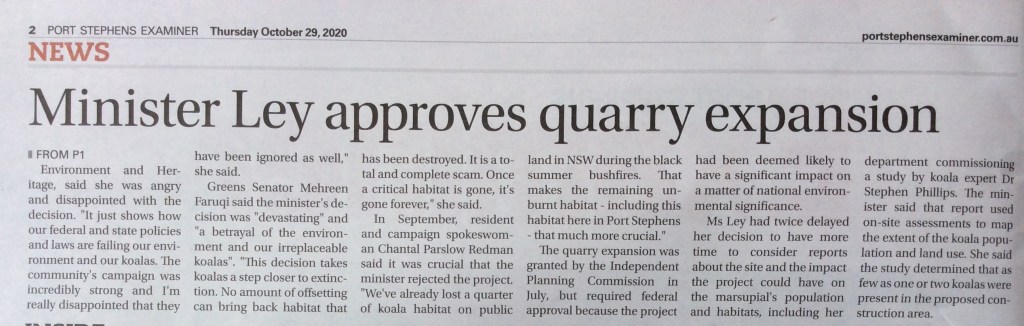 - Hanson adopted the 2020 IPC consent in late July 2024, so responsibility for compliance has transferred from Port Stephens Council to the NSW Department of Planning.